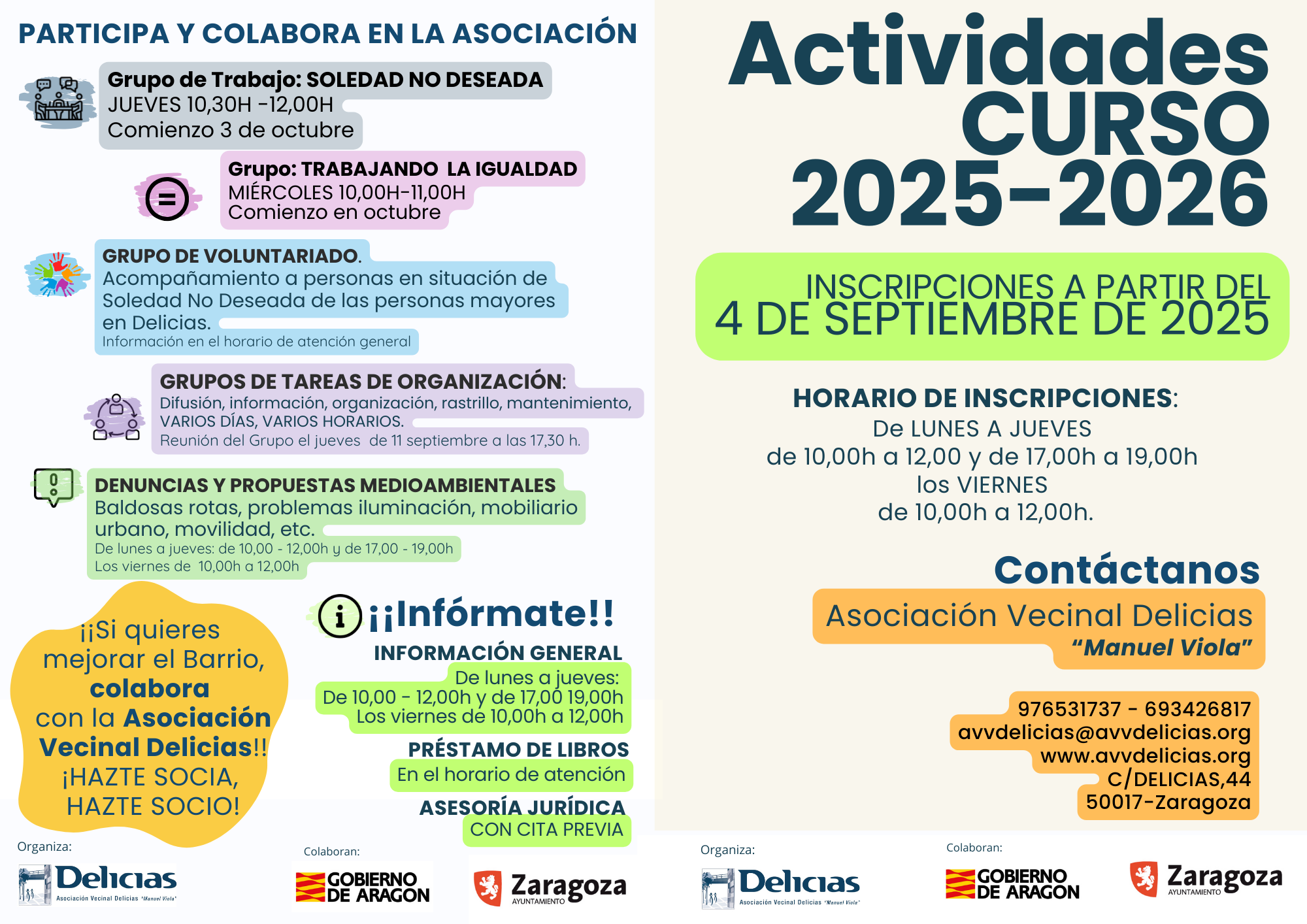 Actividades de la Asociación Vecinos de Delicias Manuel Viola 2025-26