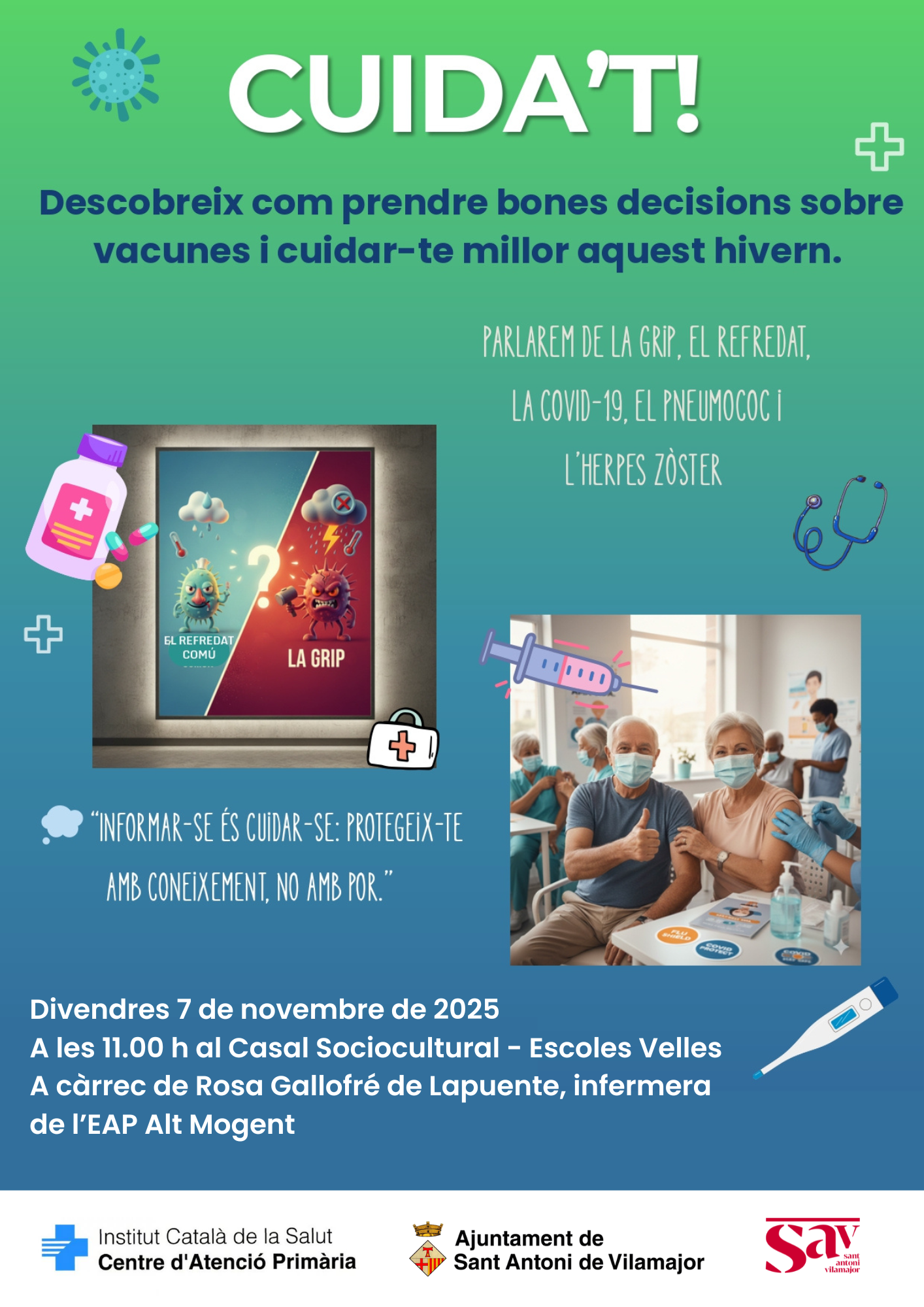 Xerrada informativa on parlaran de la Grip, el refredat, la Covid-19, el pneumococ i l'herpes zòster. A càrrec de professionals de l'EAP Alt Mogent.