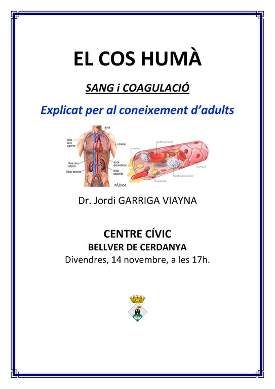 Xerrada sobre Sang i coagulació a càrrec del Dr. Jordi Garriga