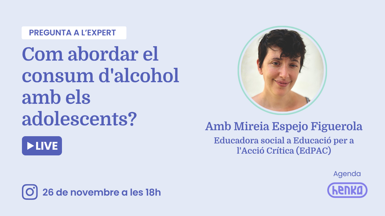 L'alcohol és la droga més consumida i acceptada socialment, però sovint els adolescents comencen a beure sense tenir tota la informació necessària. Com podem parlar d'alcohol amb els nostres fills i filles? Com podem acompanyar-los i gestionar millor les primeres sortides amb les seves amistats? Podem fer prevenció des de casa? I detectar senyals quan hi ha un problema?