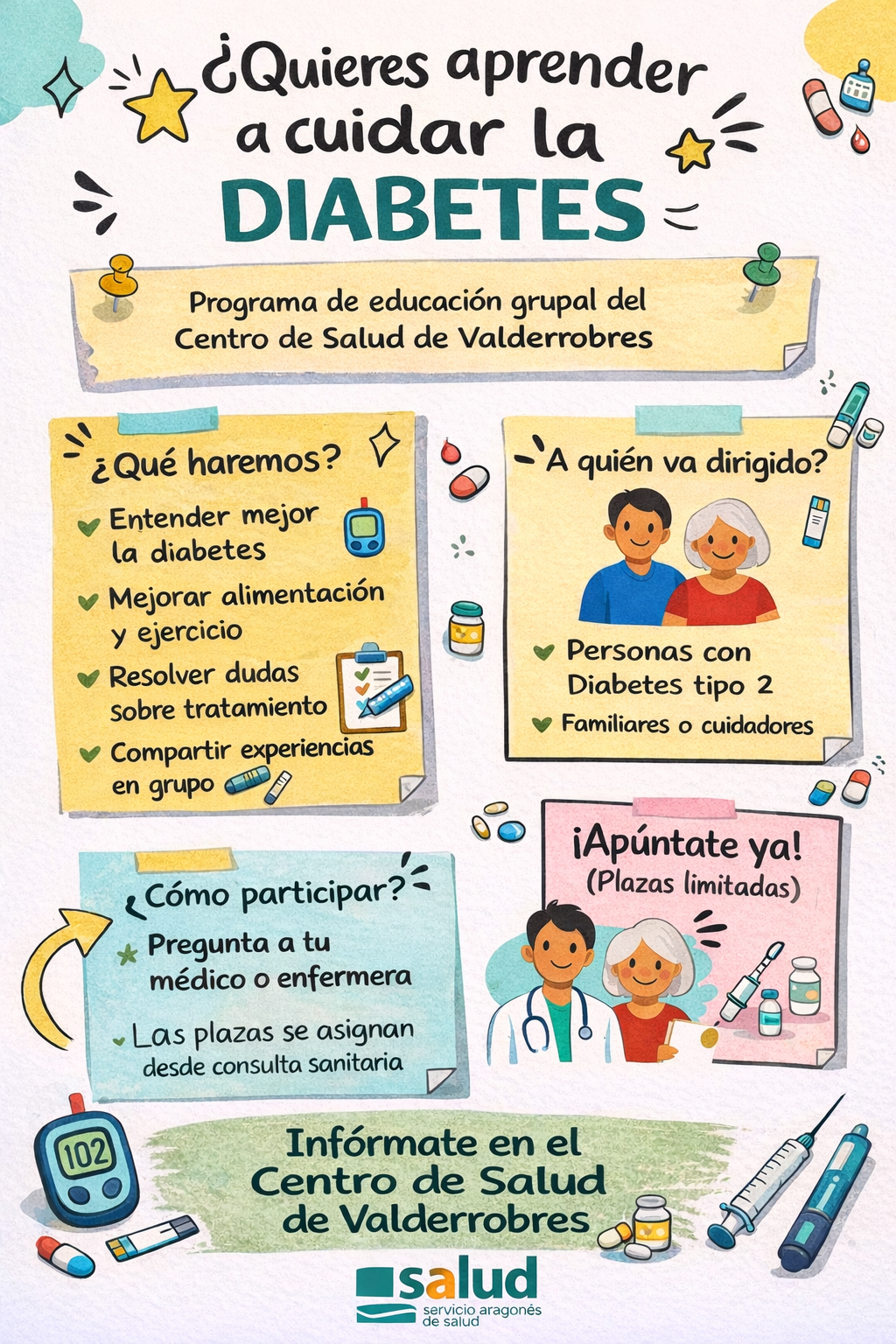 Aprender a cuidar la diabetes es una actividad de educación para la salud grupal, impulsada desde Atención Primaria, dirigida a personas adultas con Diabetes Mellitus tipo 2 y, cuando resulte relevante, a sus familiares o cuidadores.