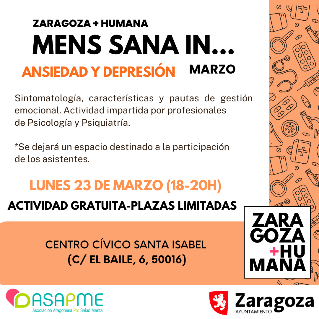 El Ayuntamiento de Zaragoza y la Asociación Aragonesa Pro Salud Mental (ASAPME-Aragón) han puesto en marcha el proyecto “Zaragoza+Humana” que busca generar conocimiento, conexión, cohesión y bienestar en la ciudad. Un objetivo que se alcanzará a través de diversas acciones como talleres de salud mental, asesorías individuales de psicología y psiquiatría, rutas por la ciudad, encuentros literarios, cine, juegos y salidas culturales.