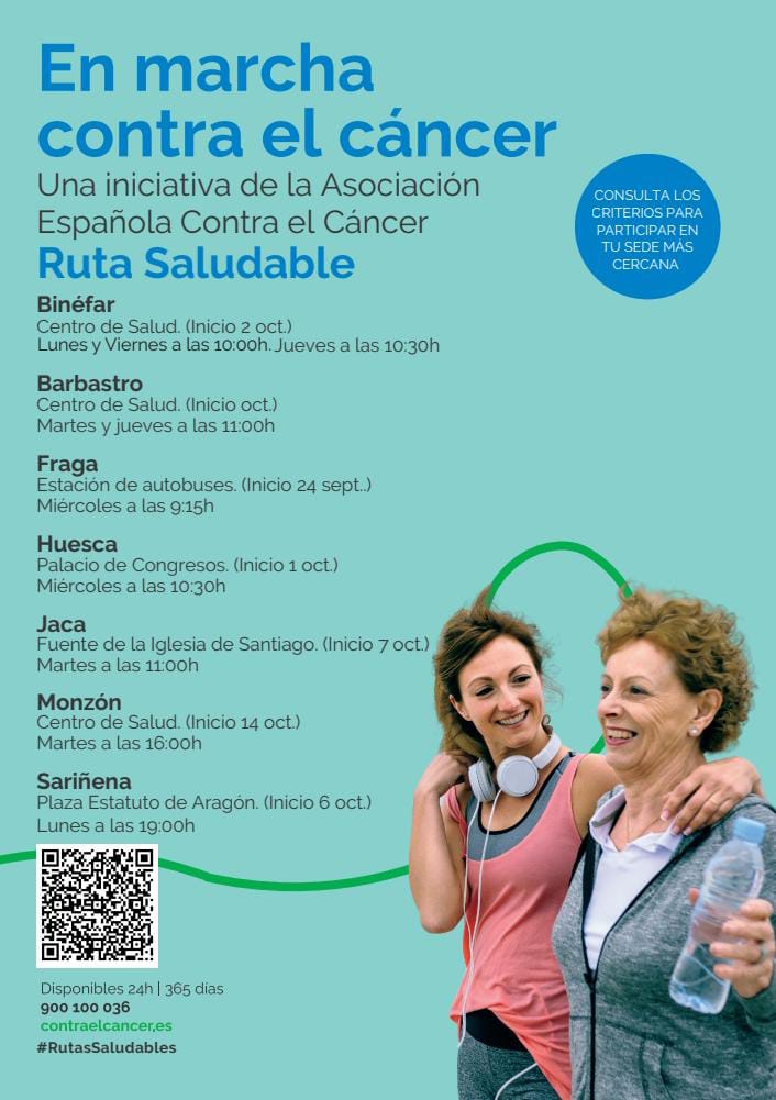 Las personas interesadas pueden acudir directamente al lugar de salida, a través del correo huesca@contraelcancer.es, el enlace del qr del cartel https://forms.office.com/e/aRHjhU53YA o si quieren más información pueden llamar al 900 100 036.