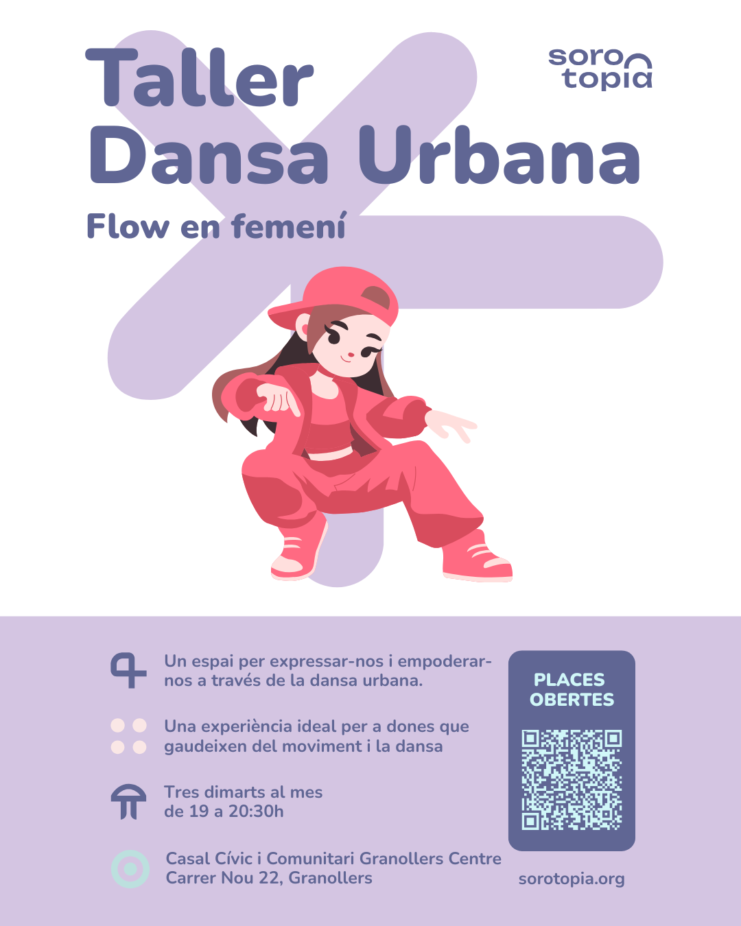 Explorarem moviments de dansa urbana, ritmes actuals i petites coreografies. No cal experiència prèvia: només ganes de moure’t i passar-ho bé!